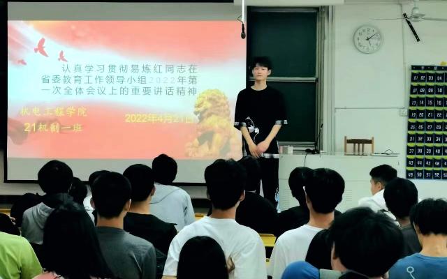 为深入学习贯彻省委书记易炼红同志在省委教育工作领导小组2022年第一次全体会议上的重要讲话精神,机电工程学院组织全院师生通过开展专题研讨会、主题党日活动、班会和大讨论等活动,营造良好的学习氛围,推进讲话精神落实落细。讲话精神在师生中反响热烈,形成了学习重要讲话精神的热潮。