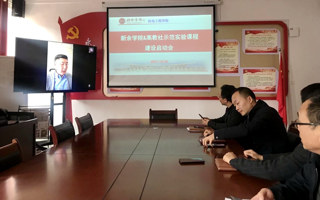 10月26日下午,机电工程学院领导与高教社负责人在该院党员活动室召开了新余学院与高教社示范实验课程建设启动视频会议。