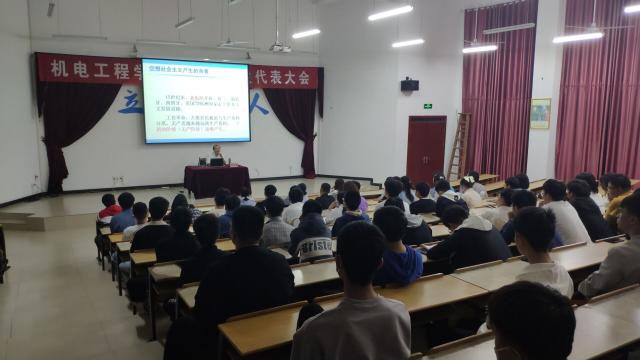 为深入学习贯彻习近平总书记“七一”重要讲话精神,10月12日,机电工程学院党委书记徐顺建、党委副书记方建新、副院长杨国军、副院长陈枭分别给联系班级作专题宣讲。