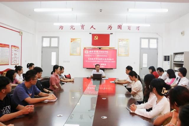 2021年9月28日,外国语学院党委书记、院长刘华东在党员活动室开展了习近平总书记“七一”重要讲话宣讲活动,本次宣讲活动的主题为 “为实现中华民族伟大复兴而奋斗”。宣讲会由外国语学院党委副书记胡小刚主持,外国语学院全体学生党员参加了宣讲会。