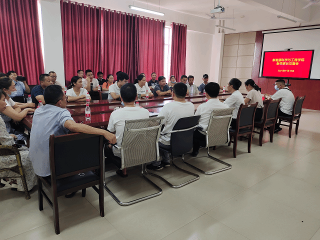 开学伊始,金秋飒爽,新能源科学与工程学院迎来了2021级本科新生。为了搭建家校互动交流平台,帮助家长了解学校及学院情况,助力学生成长成才。9月10日,新能源科学与工程学院在会议室召开了2021级新生家长见面会,会上,该学院负责人首先对新生家长的到来表示热烈的欢迎,然后从学院的发展概况、师资、人才培养、科研、课程建设、实验室建设、学生工作等方面做了详细介绍。在与家长交流中,对大家共同关心的专业设置、学生考研、学生就业等有关问题进行了耐心细致的解答。