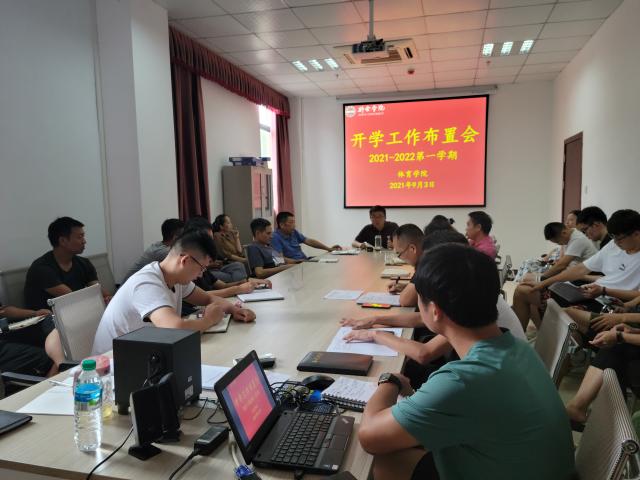 为做好2021-2022学年第一学期的开学准备工作,9月3日下午,体育学院召开全院专兼职教师大会。会议由党委书记、院长傅超主持。