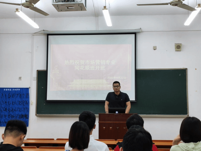 4月22日上午,经济管理学院18级市场营销专业“同花顺班”在文a104教室顺利开班,18级市场营销专业的部分学生参加了开班仪式并聆听了课堂内容。