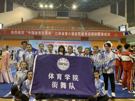 11月6日-9日,由江西省人民政府主办,江西省体育局、江西省体育总会承办的“中国体育彩票杯”第六届全民健身运动会啦啦操比赛在江西省体育馆举行,共有11个设区市代表队,近300名运动员参赛。我校体育学院街舞队收获啦啦操自选动作组(C组)一等奖。