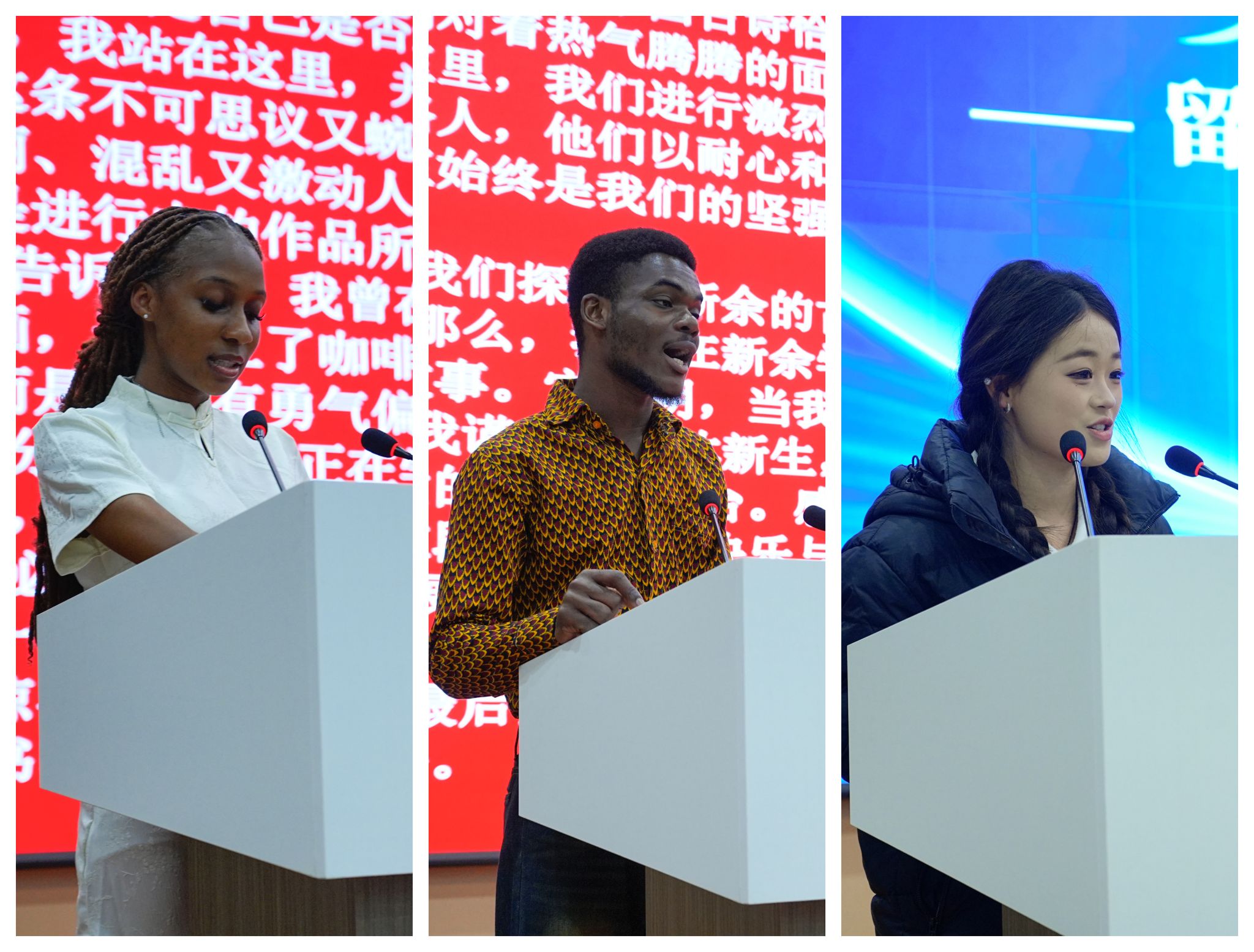 2024级优秀老生代表Sammiey结合自身求学经历,以鲜活的亲身经历分享了校园生活适应技巧,鼓励新生保持开放心态,主动探索、积极融入,在学业钻研与文化交流中突破自我、实现成长。2025级新生代表Kelvin表达了感谢之情,并表示将倍加珍惜来之不易的学习机会,在专业领域深耕细作、精益求精,同时主动担当文化交流使者,为促进中外学子相互理解与深度交融贡献青春力量。国际学生协会代表吴嘉慧表达了与国际友人互学互鉴、共筑友谊的真诚愿望,期待在校园中携手成长、共话未来。