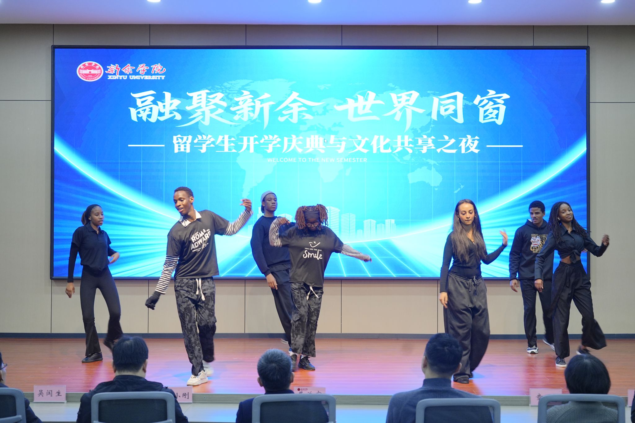 典礼现场氛围热烈,多元文化交相辉映、活力绽放。才艺展示环节中,留学生们依次献上活力四射的舞蹈、深情动人的演唱以及刚劲有力的中国武术表演。节目形式丰富多样、精彩纷呈,既彰显了各国文化的独特风采,也传递出中外学子跨越语言的情感共鸣,生动诠释了新余学院校园文化的包容与多元特质。