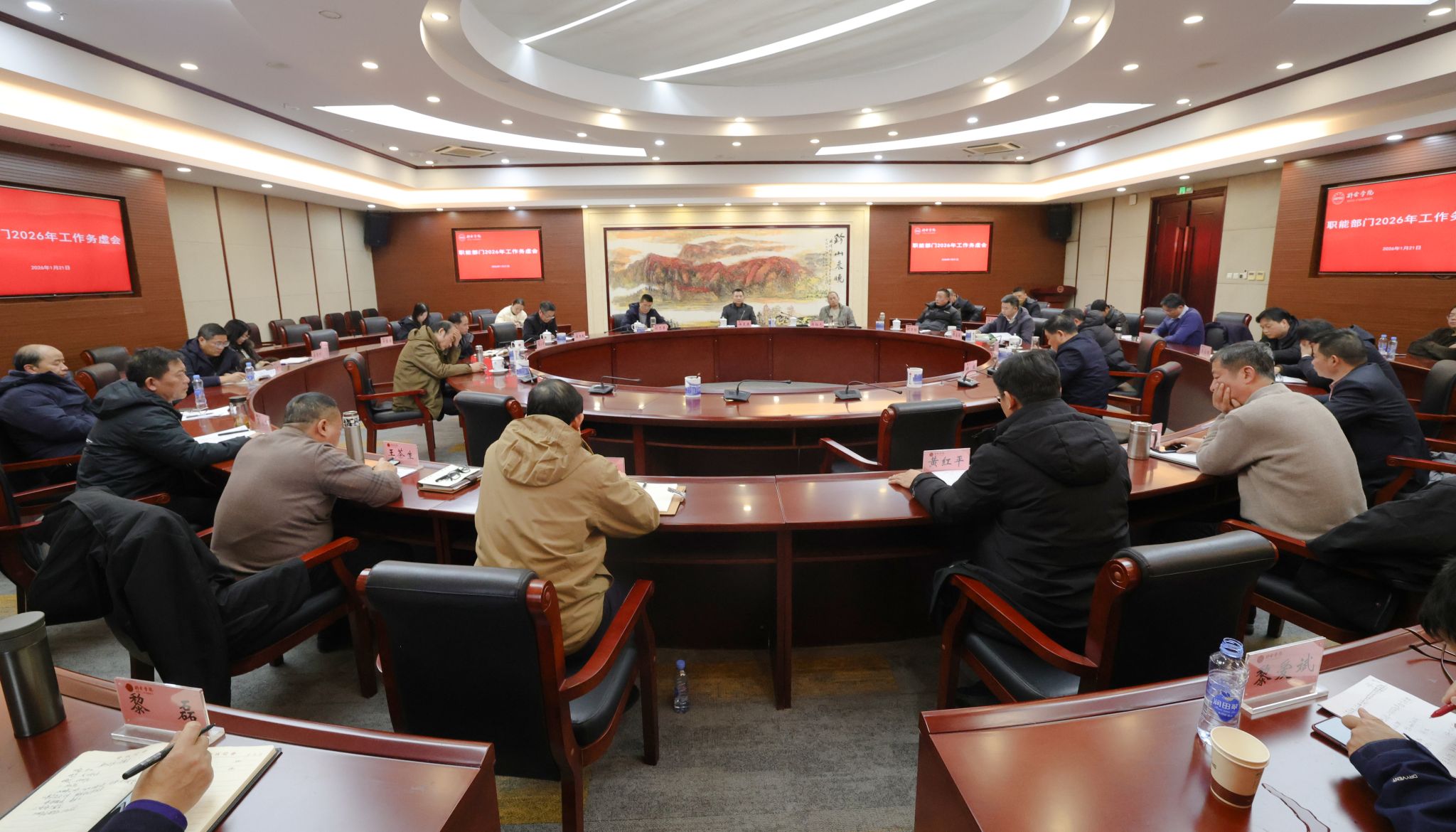 1月21日,2026年职能部门工作务虚会在图书馆天工论坛召开。校党委书记伍复康主持会议并讲话,校党政班子全体成员出席会议,各职能部门主要负责人参加会议。