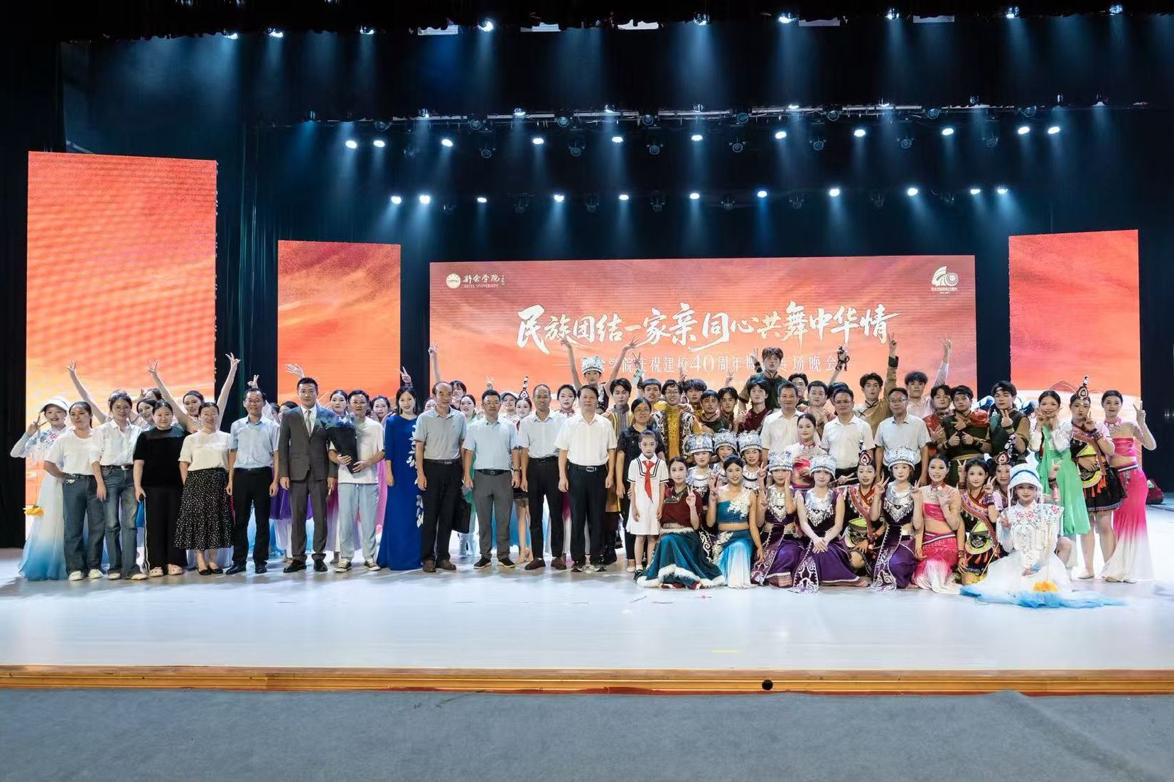 本场晚会以舞蹈为独特载体,展现中华民族多元文化魅力,铸牢中华民族共同体意识,作为我校40周年校庆的重要活动,集中呈现了我校民族团结进步教育与美育工作成果。一直以来,学校始终坚守立德树人初心,牢记为党育人为国育才使命,将民族团结教育深度融入育人全过程。未来,学校将坚持以铸牢中华民族共同体意识为主线,持续深入开展民族团结进步教育,打造各类主题文化活动,教育引导青年学生自觉当好民族团结的“建设者”,铸牢中国心、民族魂,为推进中国式现代化、实现中华民族伟大复兴贡献青春力量。