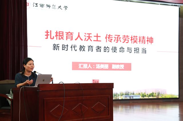9月18日,由省教育工会主办、新余学院工会承办的“工学互动 共育英才”——劳模工匠进校园宣讲活动在图书馆学术讲堂举行。江西师范大学汤美丽教授应邀作专题报告。近500名师生代表齐聚现场,共同聆听劳模故事、感悟工匠精神、汲取奋进力量。