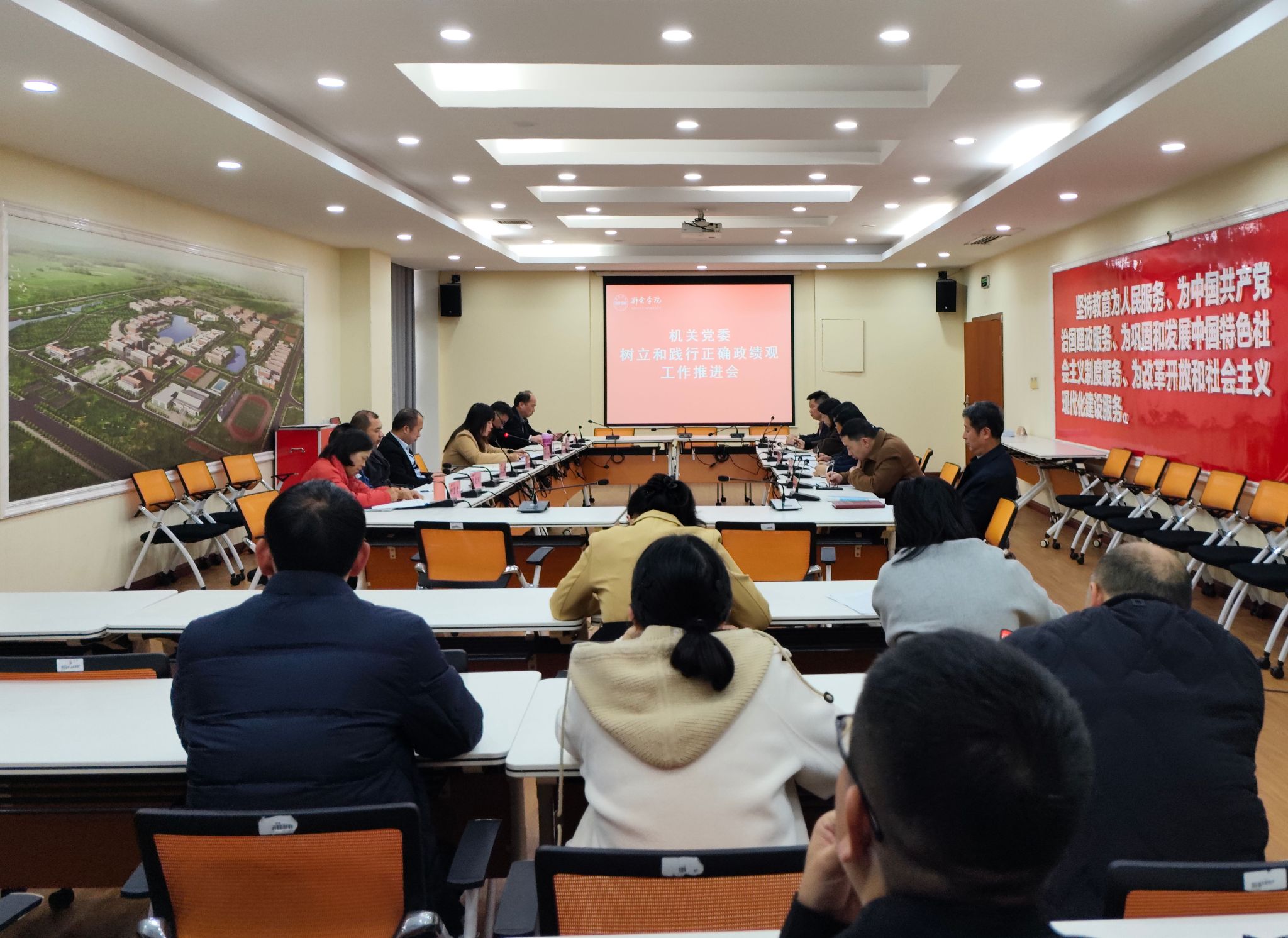 3 月 25 日下午,机关党委召开树立和践行正确政绩观学习教育推进会,专题部署“学—查—摆”一体推进工作。机关党委委员、各党支部书记及党员代表参加会议,机关党委书记主持会议并讲话。