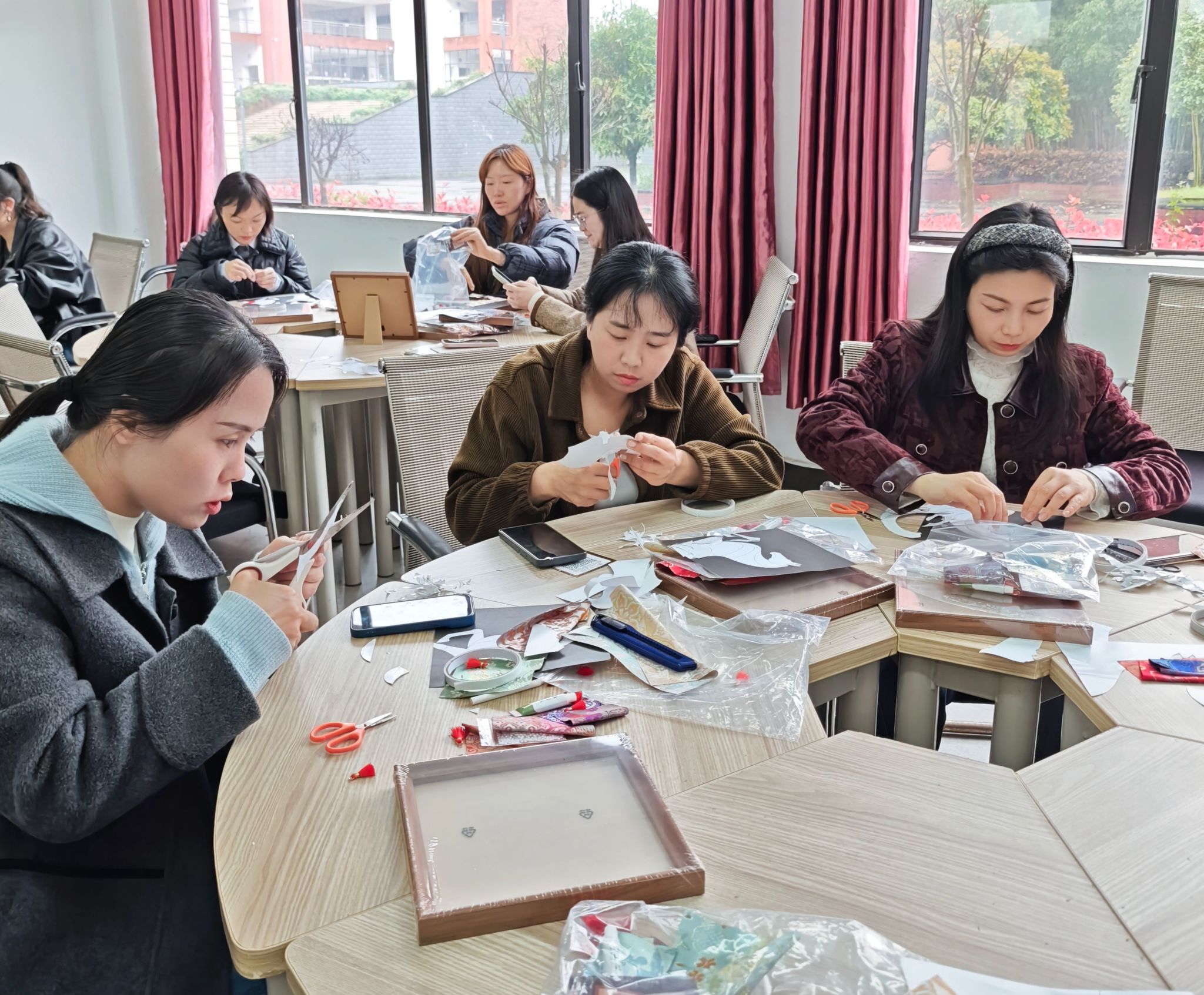 巧手匠心,绽放巾帼风采。3月31日,宋锦手工制作体验活动顺利开展,六十余名女教师参与其中。大家在一嵌一贴、一针一线中融合传统技艺与现代审美,相互交流、创意迸发,一幅幅精美别致的手工作品次第呈现,尽显对美的追求与对生活的热爱。