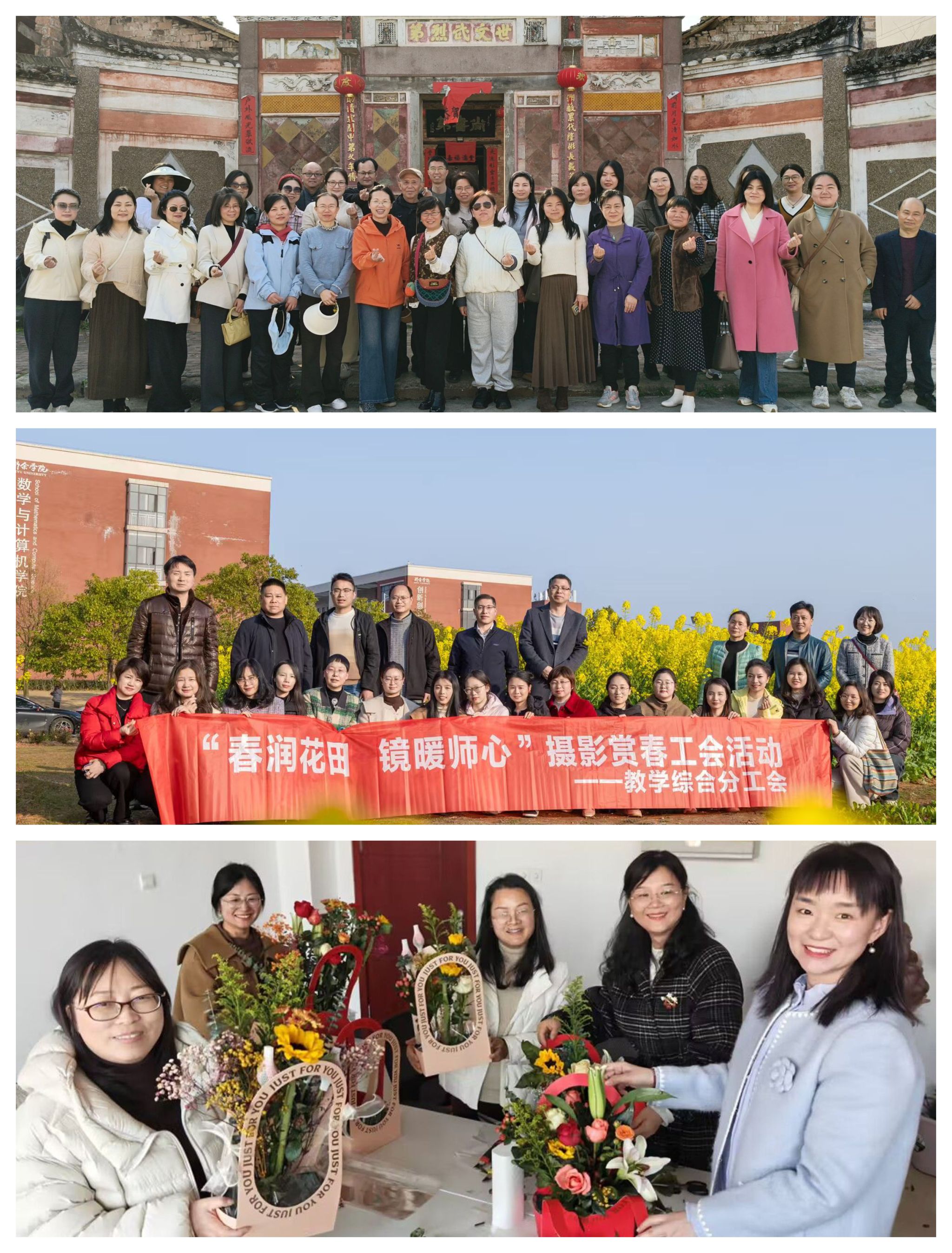 基层联动,共庆美好节日。活动期间,学校各分工会因地制宜、创新形式,开展了丰富多彩的特色活动。公共卫生与健康学院分工会开展八段锦教学及中医理疗服务,人文学院分工会组织踏青访古村活动,经济管理学院分工会开展登山采野菜活动,建筑与设计学院举办插花体验,教学综合、机电工程学院、数学与计算机学院等分工会组织校园赏花踏青。一系列暖心活动暖意融融,让广大女教职工在轻松愉悦的氛围中欢度节日,切实把幸福校园建设的温度与理念,传递给每一位女教职工。