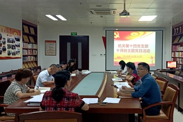 10月14日下午,机关第十四党支部在图书馆四楼会议室召开10月份主题党日活动,会议由支部书记周辉艳主持。