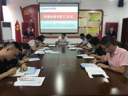 节日期间,该院利用网站主页、微信公众号、制作微视频等宣传形式,突出今年教师节主题,积极营造浓厚的节日氛围。9月10日下午,该院召开教师座谈会。号召教师要成为学生做人的镜子,以身作则、率先垂范,以高尚的人格魅力赢得学生敬仰,以模范的言行举止为学生树立榜样,把真善美的种子不断播撒到学生心中。座谈会上与全体教师签订教师师德承诺书。另外,该院新入职教师与全校新教师一起向国旗庄严宣誓,郑重承诺履行教师职责、落实教师誓词,进一步坚定了广大教师始终不忘教书育人初心、牢记立德树人使命,争做“四有好老师”的理想和信念。
