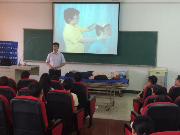 讲座中,王老师由“没有全民健康,就没有全面小康”引入主题,耐心教大家学习了CPR现场紧急救护知识、常见慢性病的防治等内容。同时亲自示范,带动教师现场参与演示。