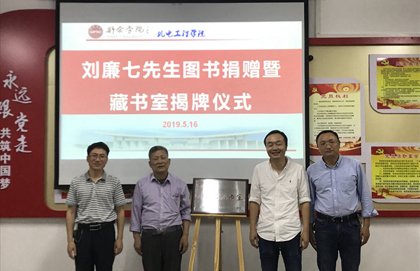 捐赠仪式后,刘廉七先生与机电工程学院党委书记、院长徐顺建共同为刘廉七藏书室揭牌。随后与机电工程学院师生一起参观了刘廉七藏书室。