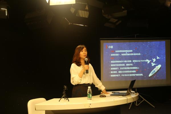 胡春凌以她多年在电视节目制作、广告运营行业的丰富经验和深入研究,对中国综艺节目从发展轨迹、生产和营收方式、平台竞争和市场背景、节目新生态四个方面展开分析,最后提出综艺节目市场的竞争呈现出拓新和共融的新态势。她的讲述数据翔实,案例丰富,语言幽默而又深入显出,大家深受启发。本次讲座给同学们带来了一个与行业专家面对面接触的机会,为同学们更好的了解行业最新动态、指导专业学习起到了很好的指导作用。