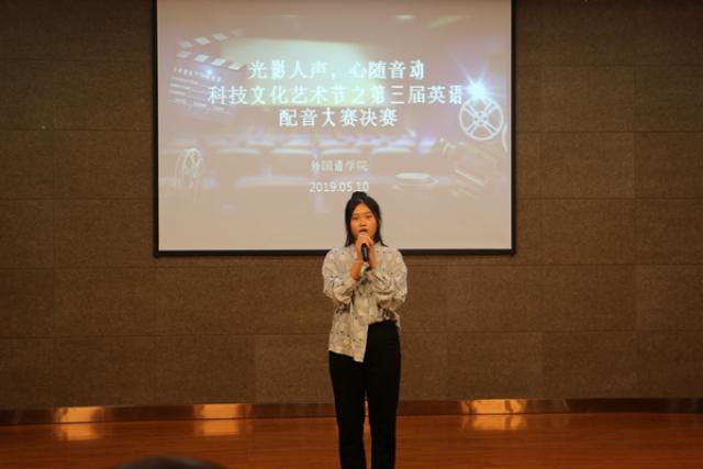 为进一步提高同学们学习外语的积极性,彰显语言文化的魅力,5月10日下午,外国语学院在艺术学院演播厅举办科技文化艺术节之“光影人声,心随音动”第三届英语配音大赛决赛。