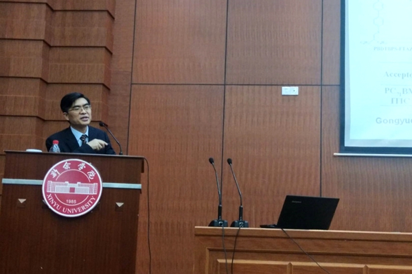 朱教授以“聚合物光伏材料与太阳能电池”为题,阐述了聚合物光伏材料及其太阳能电池的国内外研究现状,介绍了他所带领的研究团队在聚合物光伏材料的制备、太阳能电池的应用等方面所开展的研究工作以及近年来所取得的科研成果。讲座结束后,朱教授还就师生们在科研、学习等方面所关心的问题进行了交流、解答。