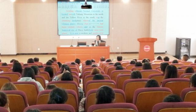 4月19日下午,河南师范大学外国语学院教授、河南师范大学应用翻译研究所所长,赵文静博士应邀来我校为外国语学院全体师生举办了题为“改进对外叙事方法,讲好中国故事”的学术讲座。