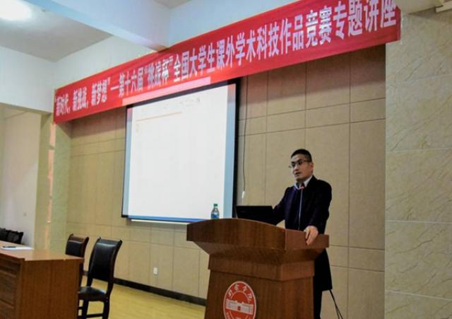 为响应国家“大众创业、万众创新”的号召,把创新创业教育融入人才培养,切实增强学生的创业意识、创新精神和创造能力,积极营造良好的双创氛围,培养一批能充分展现我校师生学术实力和创新风采的优秀人才, 4月2日校团委在产教融合中心举办了以“新时代,新挑战,新梦想”——挑战杯征程之路为主题的专题讲座,本次讲座主讲人为江西师范大学化工学院工学博士、硕士生导师余义开教授,各二级学院团委负责人,全体辅导员,各项目指导教师及项目成员共200余人到场聆听。