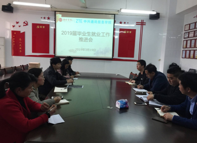 3月19日,中兴通讯信息学院召开2019届毕业生就业工作推进会,学院院长熊春如、院党总支副书记周露、学院副院长晏志勇,相关领导老师以及毕业班班主任参与本次会议。