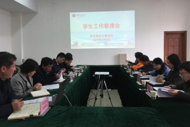3月5日上午,我校在学生事务中心会议室召开新学期学生工作会,各二级学院分管学生工作院领导参加了本次会议,会议由学生处处长刘柏松主持。