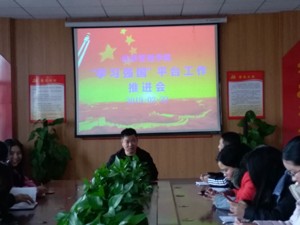 2月22日,经济管理学院在学院三楼会议室召开“学习强国”平台工作推进会议,相关负责人在会议上传达了学校关于“学习强国”平台使用推进会议的精神,对“学习强国”平台推广应用工作进行安排和部署。
