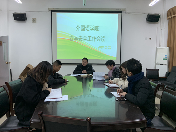根据学校保卫处下发的《2019年春季开学暨学校安全风险防控工作抽查重点内容》和《近期涉及学校安全稳定的风险动向及工作要求》的文件精神及要求,外国语学院于2月26日在党员活动室召开了2019年春季安全工作会议暨本学期第一次班主任例会,学院党委副书记胡小刚、学生科负责人及全体辅导员参加此次会议。