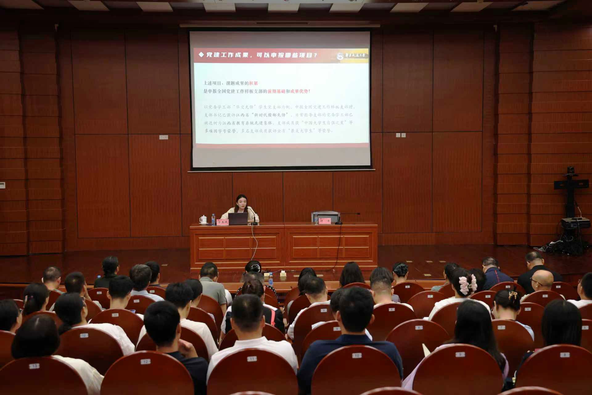 近日,我校在行政楼一楼报告厅开展基层党建工作培训会,邀请全国党建工作样板支部——华东交通大学“华交先锋”学生党支部书记、学生工作部大学生思政中心主任常玉凤分享全国党建工作样板支部的建设经验。学校各基层党委(党总支)副书记、各党支部书记、党建综合科负责人和专职组织员总计50余人参加培训。