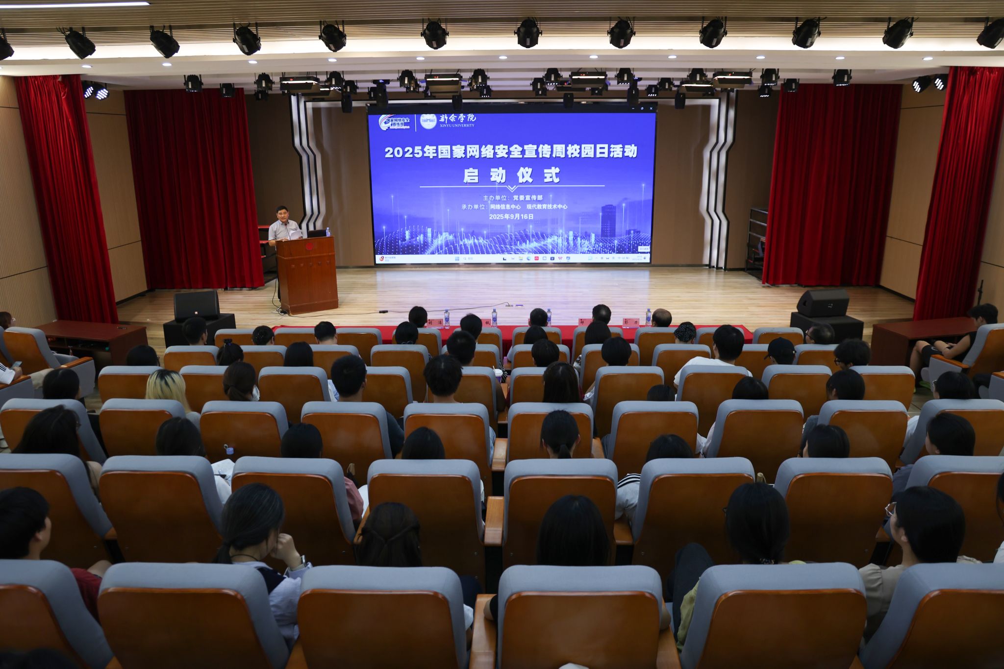 9月16日下午,我校举行2025年网络安全宣传周校园日活动启动仪式。校党委委员、副校长黄益宾出席仪式并宣布活动启动。校党委委员、宣传部部长钟钺主持启动仪式,网络信息中心、现代教育技术中心以及各二级学院相关负责人、学生代表共同参加了启动仪式。