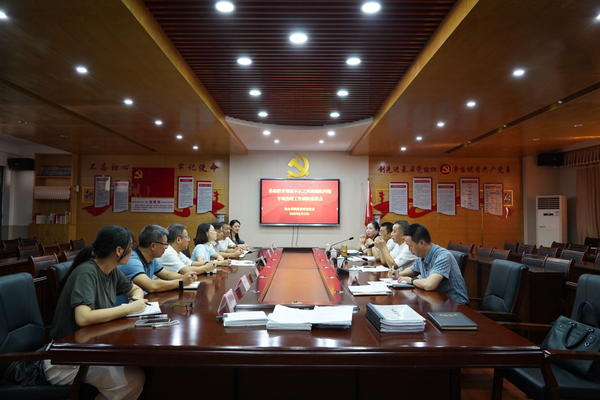 会上,校领导一行听取了附属学校党委负责人胡飞关于深化整治工作的具体举措、阶段性成效及现存难点等方面的详细汇报。刘志勇强调,要进一步压实专项治理责任,破解治理难题;要加强学习,提高政治站位,切实担负起专项整治主体责任;要坚持问题导向,紧盯教辅征订、校服采购、教育特权、教育保险等群众关切的重点领域;要建立长效机制,通过健全制度体系,坚决防范问题反弹回潮,确保学校专项治理取得实效。刘力恒就深化治理提出要求,要提高认识,抓实抓细学校专项治理工作;要凝聚班子合力,切实抓好自查自纠,把问题找准、找实、找具体;要加强宣传引导,让家长和老师充分理解专项治理的重要意义,凝聚工作共识。