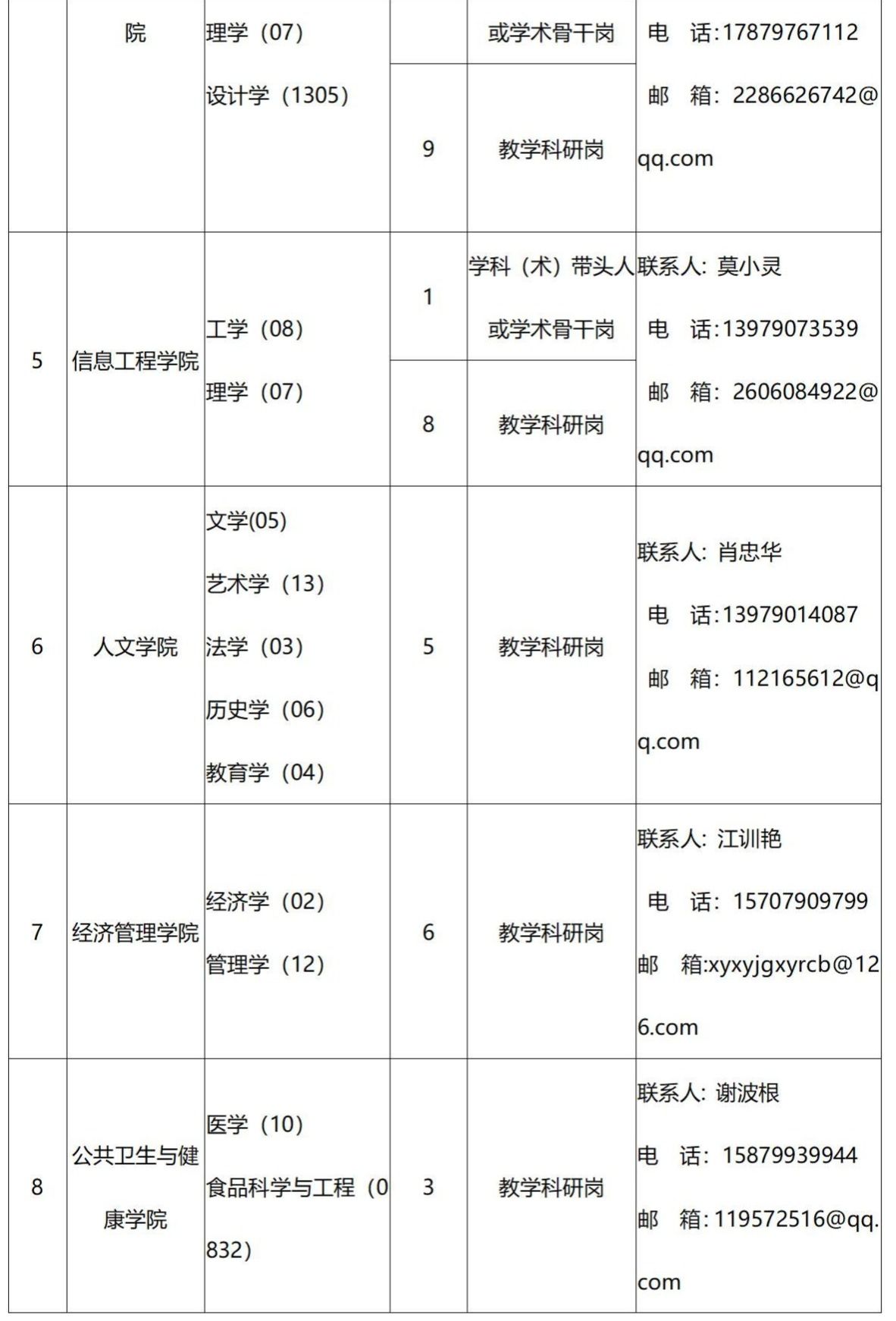 2.咨询电话:人事处咨询电话(0790-6666026),各学院招聘联系人、联系电话及联系邮箱见人才需求岗位信息表。